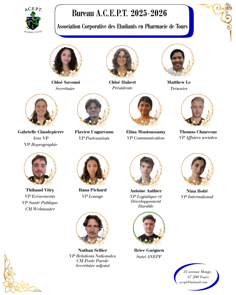 L’Association Corporative des Etudiants en Pharmacie de Tours, est une association à but non lucratif représentant les étudiants de Pharmacie.