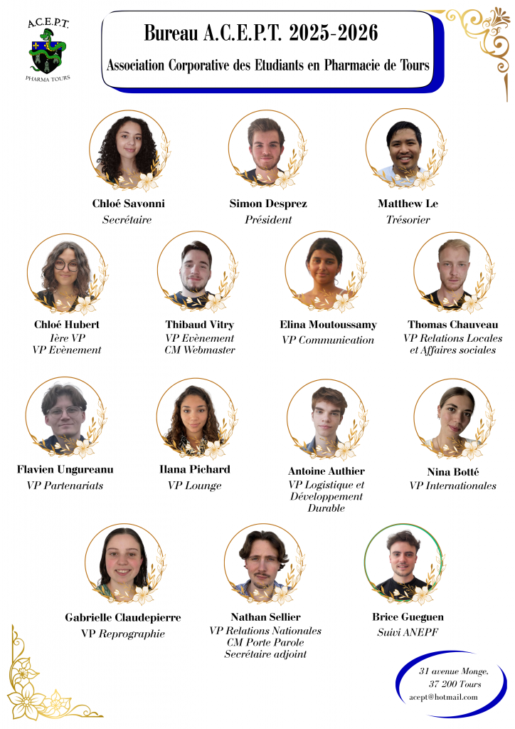 L’Association Corporative des Etudiants en Pharmacie de Tours, est une association à but non lucratif représentant les étudiants de Pharmacie.